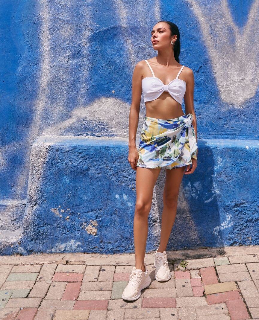 Bahia Short Skirt Renew your wardrobe with this charming tropical-style printed short skirt; This garment is perfect for sunny days and beach getaways. Its innovative design combines the comfort of a short with the femininity of a skirt, it features a tie in the front, located on one side, which not only adds a flirty detail, but also allows you to adjust the garment to your size, ensuring a perfect adjustment.