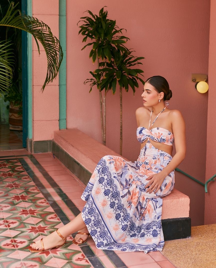 The tropical dress is an elegant and summery piece that presents a soft print on a white background, providing freshness and style.